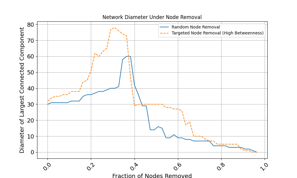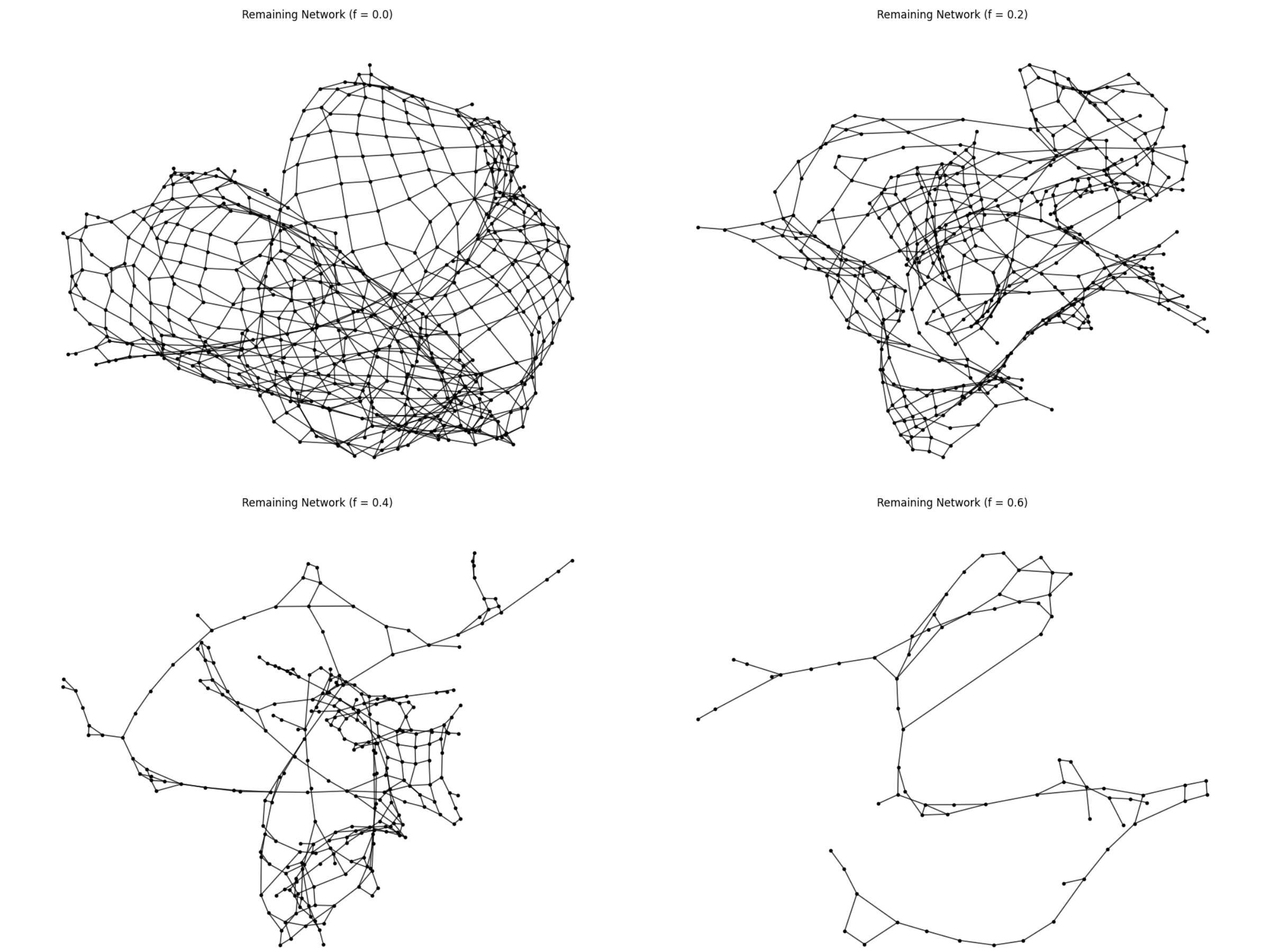 I wrote a research paper that identifies the key intersections in the Chicago transportation network through the commonly used measures of closeness centrality and local betweenness centrality (LBC), a variant of the more common betweenness centrality. Furthermore, the tolerance of this city network to intersection closures was assessed by measuring how the diameter of the network increased in response to the removal of nodes, a method that has been developed but not applied to the Chicago transportation network. We find that the Chicago city network fragments catastrophically at a critical threshold of 40% of nodes removed. Our findings are useful for urban city planners to analyze how intersection closure may impact traffic and travel time across the city of Chicago and therefore which intersections are the most important to keep open. You can find the full research paper here.